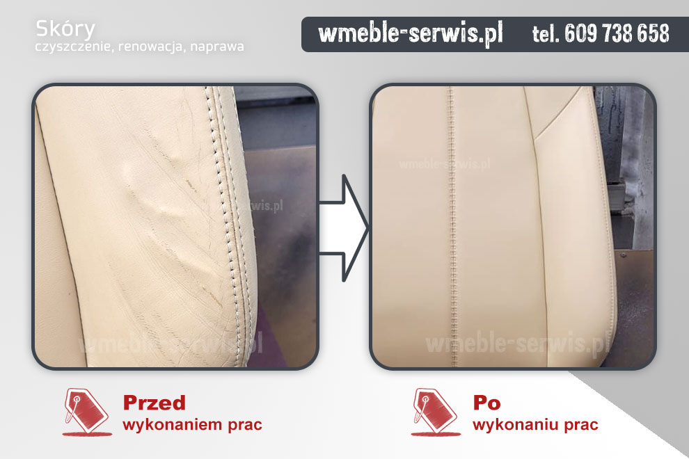 Jeśli zagniecenia są głębokie, konieczne może być ponowne naciągnięcie skóry. W fotelach samochodowych często wymaga to demontażu tapicerki, co najlepiej powierzyć specjalistom.