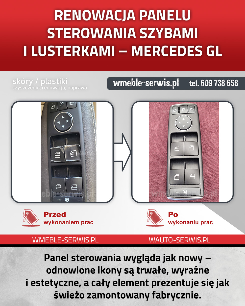 Zamiast prowizorycznych naklejek warto zdecydować się na profesjonalną laserową renowację przycisków. To nowoczesna i trwała metoda, która przywraca oryginalny wygląd przycisków bez konieczności wymiany całego panelu.